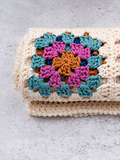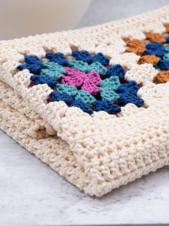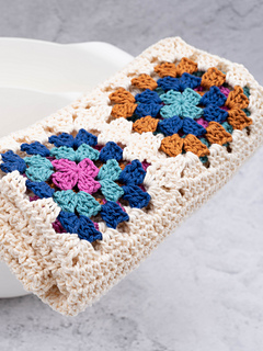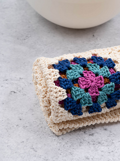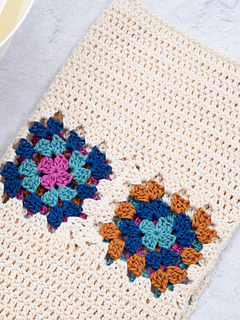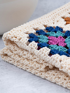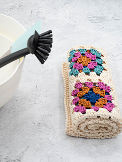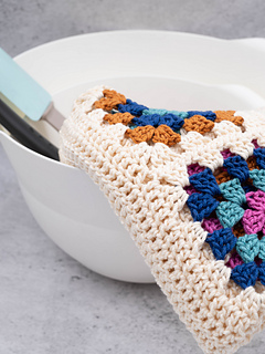 The Granny Square Dish Towel is a great easy crochet pattern for the kitchen. It features the traditional granny square, and is a great crocheted kitchen towel.