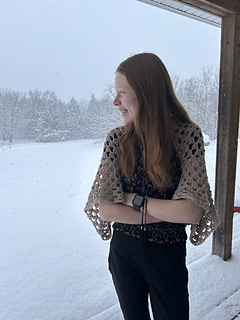 Neck Pleat added last along one of the last sides of Granny Square, creating a pleat in the fabric to help keep Bolero on the shoulders without falling.