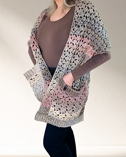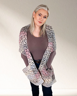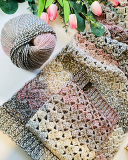 The Granny’s Tipple Pocket Shawl is a cozy, stylish wrap designed for a soft, relaxed texture. Worked in the drunken granny stitch, this shawl features large, comfy pockets and is finished with neat ribbing at the ends. It is a simple, comforting project that is perfect for beginners or anyone looking for a quick, satisfying make.