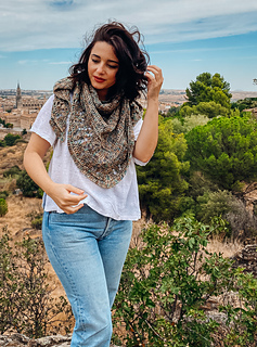 This shawl has a structure based on a basic garment, but in the centre the increases change to resemble those of the basic two-needle shawl.
