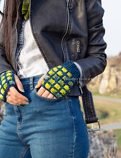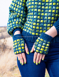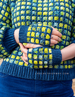 The interlocking grid pattern creates a refined, modern look, while the reversible fabric offers two distinct textures. They’re warm enough for chilly mornings yet leave your fingers free for everyday tasks—whether you’re crafting, commuting, or sipping a coffee on the go. They’re quick to make, endlessly giftable, and a perfect way to experiment with color combinations before tackling the Gridlock Jumper.
