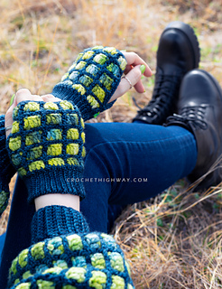 The Gridlock Gloves bring the same bold, architectural texture of the Gridlock Jumper into a smaller, practical project. Perfect for when you want a fast make with plenty of visual impact, these fingerless mittens balance structure and comfort beautifully.