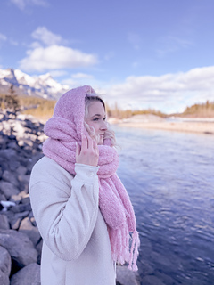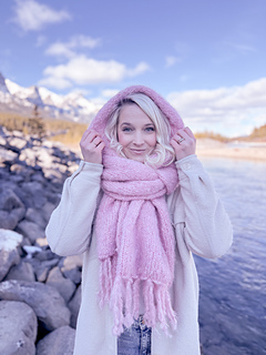 This scarf is called the Habitant Scarf as it’s a nod to Montreal, where I first saw women walking the streets with these glorious oversized scarves, worn in a way that created a cocooned hood. I fell in love.