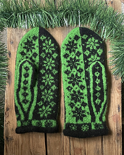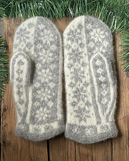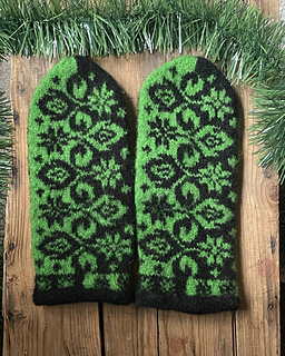 This pattern consists of 60 stitches. My mittens are knitted in pure wool and felted a bit. The pattern is in English and Swedish
