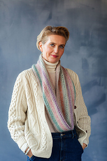 Cowl can be made in two sizes. Pattern instructions cover the short version first and instructions for the long version are in brackets.
