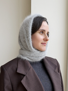 The large version (grey) can be worn as a hood or a triangle scarf and wrapped around the neck twice.