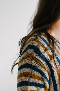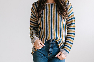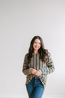 Cozy up with the Hambrooks Pullover, an everyday sweater with an intriguing and addictive construction. This sweater is worked flat from one sleeve cuff to the other, with front and back worked at the same time across the body. Working the stripes sideways in this way creates a striking vertical pattern! The interesting construction keeps this project fun to knit and the stripe pattern is easy to memorize.