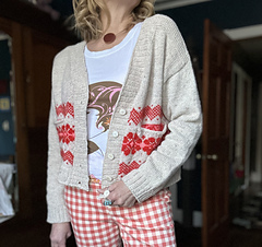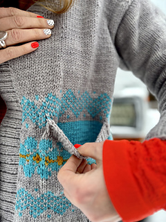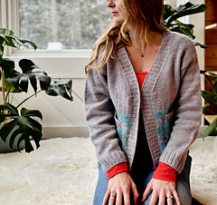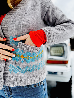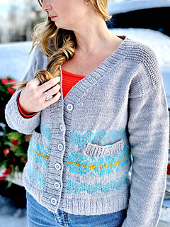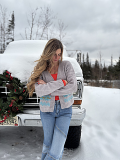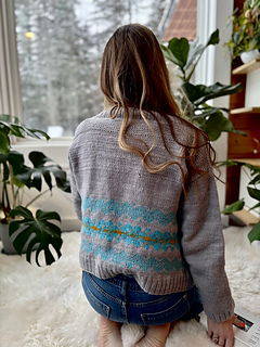 Meet the Happy Camp Cardigan—the Happy Camp pullover’s easygoing sister. It features the same cheerful colorwork motif you loved in the Happy Camp Pullover, now reimagined as a cozy, steeked cardigan. The colorwork band grounds the design with just the right touch of contrast before giving way to easy stockinette and clean lines. With no body shaping and straightforward construction, it works up quickly and is an ideal introduction to steeking. Plus, it feels like magic when you cut it open!
