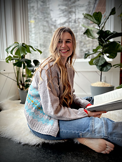 This sweater is designed to be worn with 4” - 6” (10 - 15 cm) of positive ease. The sample is Size 2 and is shown worn with 4.5” / 11.5 cm of positive ease. Ease is, in my opinion, a matter of personal preference. The best way to determine what size to make is to measure a knit garment that you already love. Measure across the chest of the garment and double that measurement to get the circumference. Then, choose a size from this pattern that is closest to that measurement. If you find yourself between sizes, I recommend sizing up for a more relaxed fit that will drape well.