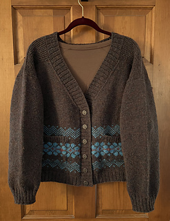 Ribbing: US Size 5 / 3.75 mm 40” / 100 cm circular needle for the ribbed buttonband and a magic loop needle for the ribbed sleeve cuffs.