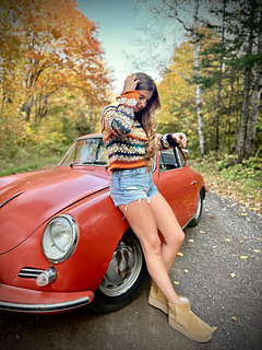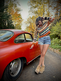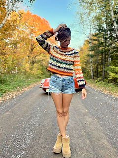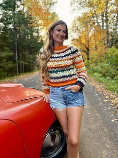 The straight body and relaxed rolled hems keep the silhouette casual and layer-friendly, while the sleeves taper gently toward ribbed cuffs for a polished finish. It’s a sweater designed for joyful knitting and everyday adventure — equally at home by the campfire or out in town.