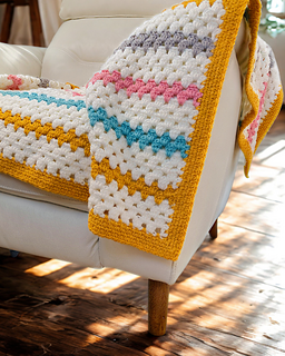 The Happy Go Granny Blanket is a timeless granny stitch design, perfect for crocheters of all skill levels. This easy-to-follow pattern creates a beautifully textured blanket that works up quickly and is ideal for stash-busting.