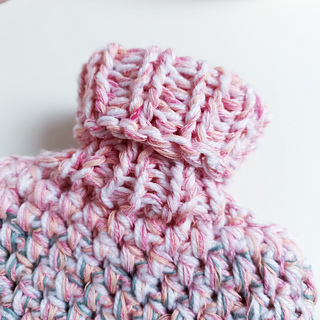 Worked in simple stitches and continuous rounds, this beginner-friendly crochet pattern creates a stretchy, snug-fitting fabric with beautiful vertical texture. The cover is shaped at the top to fit neatly around the bottle neck and can be finished with either a knitted ribbed cuff or a crocheted ribbed neck.