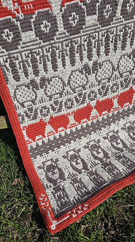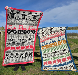 For those of you wanting to make a larger blanket, Caroline Tigchelaar and Lynn Leonard made larger versions using Yarnsmiths Create DK. They both incorporated the gauge swatch and the carrots from March Hare, and Lynn also added sections from Lakenham Mosaic Sampler and Beside The Seaside.