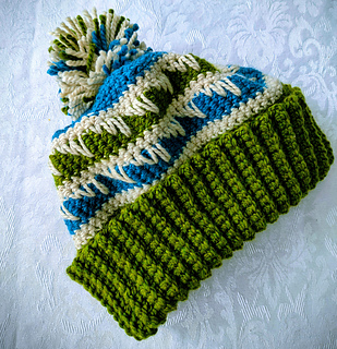 This easy ski hat is created with three colors of the same yarn. At is ALL sc and slst with one small modification. The Purl SoHo yarn suggested is a yummy and soft wool yarn, but any worsted weight yarn could be used. The ribbed band makes is very stretchy.