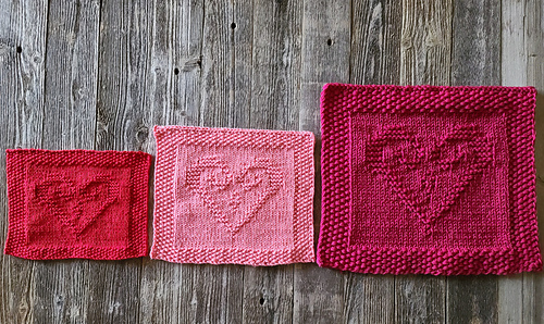 LOOM Knitting Pattern ♥ The Hearts Amour Square is worked flat from the bottom up. It features a seed border and center heart design. A chart and written instructions are included.