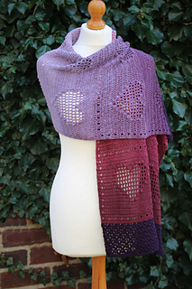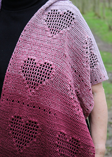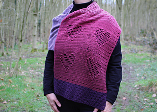 This lightweight shawl features a fun filet heart design with a puff stitch twist - perfect for adventurous beginners that would like to try something new.