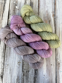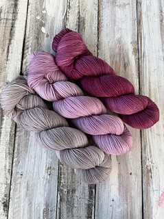 The sample shawl was knit using NNK Hand-Dyed Yarns MCN fingering