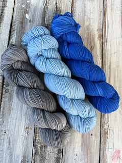 I used three semi-solid colourways to create a contrasting, colour-block effect. When deciding on your yarn, you might think about picking three relatively high contrast skeins that all look good together.