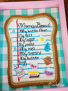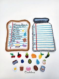 This unique adorable pattern allows you to create a crochet recipe card and coordinating ingredients for your favorite family or special recipe!