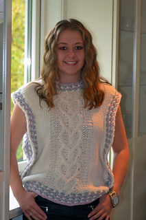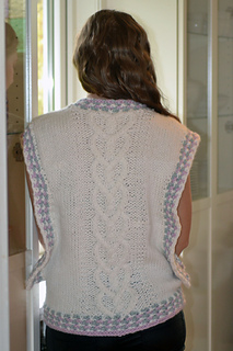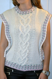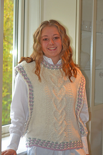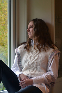Helena er en middels lang vest. Helena strikkes nedenfra og opp og med øking til skuldre, og strikkes med flettestrikk. Den strikkes i ett stykke – det er dermed ingen montering, med unntak av trådfesting. Helena er en middels lang oversized modell og passer godt med en skjorte under, i bare armer,med en t-shirt eller en genser under.