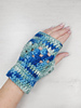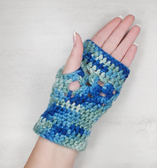 Helping Hand Fingerless Mitts Crochet version is constructed top down with a dc cluster lace section.