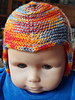 Baby hat is worked flat. This type of hat is sometimes named “devil’s hat”. I do not like this name at all. Now it has a German name which literally means “adorable three-cornered hat”.