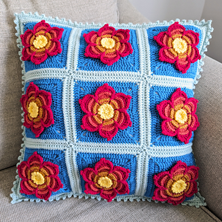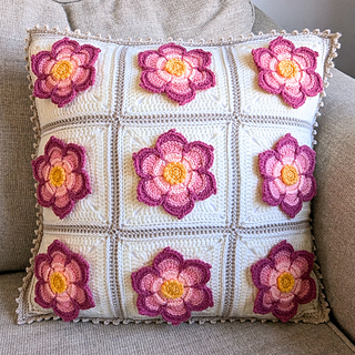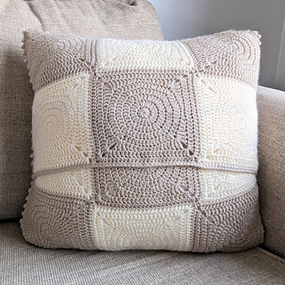 The pattern also comes with instructions for making a 3-square x 3-square cushion cover, using the Hestia Square for the Front Panel & the Solid Square (whose pattern is also included) for the Back Panels. These panels are then joined in such a way to create an envelope opening for you to easily insert & remove the cushion.