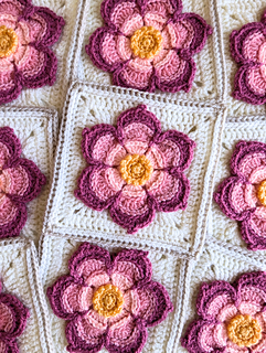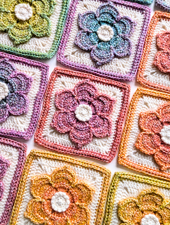I’ve also made some Hestia Squares using Yarnsmiths Pebble Haze DK yarn (which can be seen in Photos 6-8). However, because this project isn’t complete, colorway info for these squares is not included in the pattern.