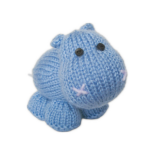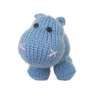 This cuddly little hippo is knitted predominantly in stockinette, with a single crochet chain for their tail. Designed by Amanda Berry @fluffandfuzz, most pieces are knitted in acrylic DK yarns on single pointed needles (not in the round).