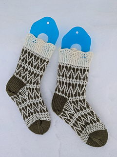 Split heart socks with a cute lace border. If you want you can do k1-p1 ribbing instead.