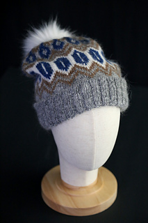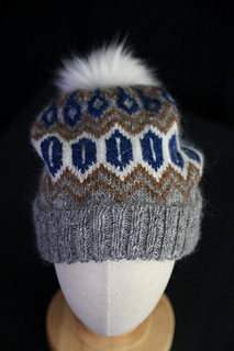 Some rounds require holding three colors at once. Keep your tension nice and loose! The yarn called for is “grippy,” so there is no need to lock floats. The crown is a little bit taller than a beanie, to accommodate deep heads or hair up in a bun. If you have a shallower head and/or wish to wear it lower on the head, you can roll the ribbing up higher to reduce the height (and/or knit the ribbing shorter.)