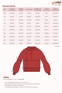 Yoke depth measured from base of neck after ribbing: (21.5, 22) 22.5, 24, 25 (25.5, 26.5, 27) 28, 29.5 cm | (8.5, 8.75) 8.75, 9.5, 9.75 (10, 10.5, 10.75) 11, 11.5 inch.