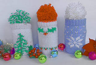 Holly Jolly Gift Jar Covers by Frugal Knitting Haus