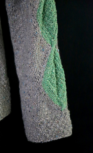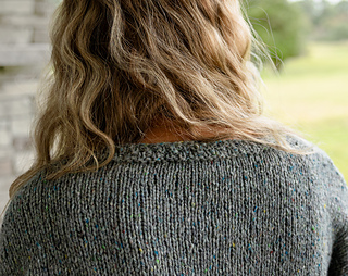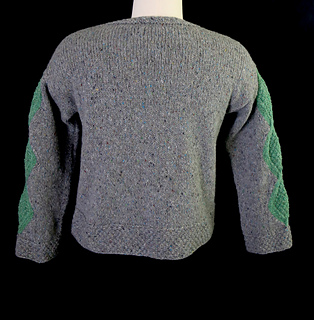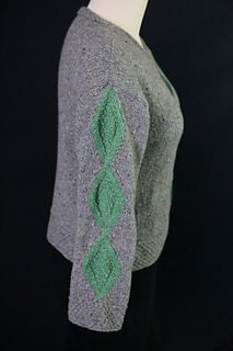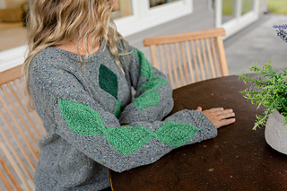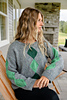 Inspired by the Holt Christmas Market in England, this loose-fitting cuddly pullover features intarsia on the front with moss-filled diamonds on the sleeves. The Shaped Intarsia method is used to create more defined diagonal lines on the diamonds. It’s worked flat from the bottom up and seamed. It accompanies the article, “Shaped Intarsia,” in the Winter 2025-2026 issue of Cast On.