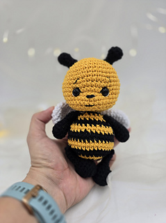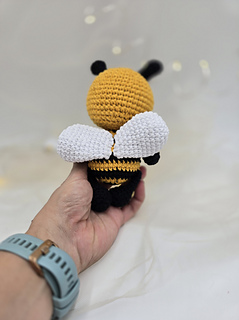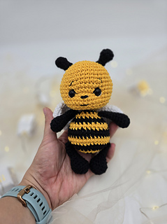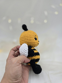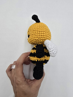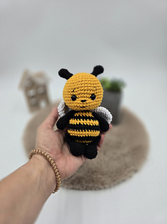 This is a soft amigurumi bee made with cotton yarn.