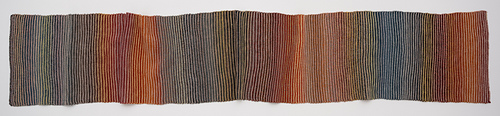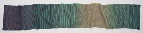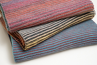 Horizontal Beats is a super-simple pattern with big visual impact. It has a strong horizontal texture and colored stripes that are created with yarns that change colors slowly.