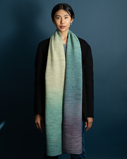 The yarns are from three North American dyers: Freia Fine Handpaints, Gauge Dye Works, and Spincycle Yarns. Each company uses different approaches to creating long-repeat yarns: Freia Fine Handpaints make long, smooth transitions from one solid color to another. Gauge Dye Works is famous for their precision color changes to create remarkable stripes. Spincycle Yarns create moving plys: each ply changes independently so the yarns are moving marls.