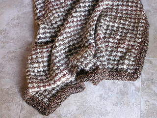 From the pattern description: Worked in crisp, contrasting colors, this blanket is sophisticated as well as cozy and warm. Its simple-to-knit slip-stitch pattern uses only one color yarn per row so you don’t have to carry two colors.
