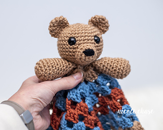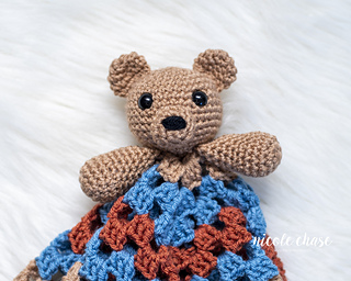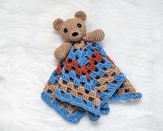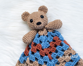 The Hug Me Bear Lovey makes a great gift for a new baby or expecting mom. The bear pieces are worked in the round, with a classic granny square blanket.