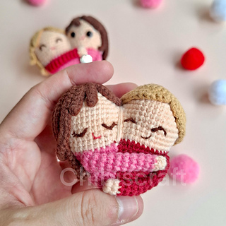 Meet the Hugging Heart amigurumi, an adorable couple hugging in the shape of a heart. Their sweet embrace forms the perfect symbol of love, making them just the right size to brighten your bag or keep your keys company. It’s also perfect as a decoration or gift for wedding or wedding anniversary, Mother’s day, or Valentine’s day.
