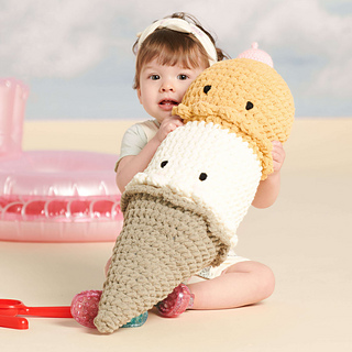 Whether enjoyed as a toy or a pillow, this cushy crochet toy pattern works up fast to make a sweet, oversized ice cream cone! Stitched using only one wheel of our plush Bernat Blanket O’Go, the pattern starts from the top, working seamlessly to create both scoops, followed by the cone. Complete your stuffie with a separate cherry made of scrap yarn, plus simple embroidered eyes and blush to give it personality. Create your version using any color flavors that make it fun for you.