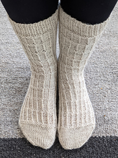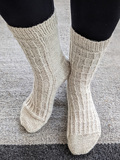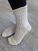 Iivola socks are inspired by functionalism. They are simply constructed fitted socks. In a detail there is a straight line between cuff and toe created with purl and twisted sts. Pattern is writen for dpn:s but can be knitted wit magic loop or some other method as well. Sock are knitted top-down. Cast on is italian and bind off is made with kitchener stitch. There is directions for that bind off in a pattern. In socks there are spliced heelflap and gusset decreases. There is a one size 38-40 in a pattern, but there are directions to modify size. With Iivola socks there are Iivola mittens in the same collection. The patterns will be in English also.