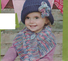 2 x 50 g balls Chunky in Hummingbird/cowl & beanie flower and