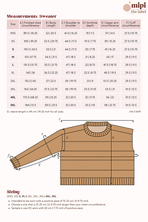 The sweater and cardigan are designed to be worn with a positive ease of 15-25 cm | 6-9.75 inch.