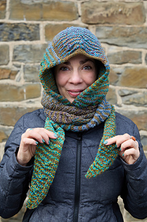 And now, the mystery is revealed! This pattern is the Scarf version, it includes instructions to knit it in a single color or in two colors. If you love a good wrap and crave that scarf vibe with your hood, this one is the way to go. The pattern includes detailed video tutorials to help you on your knitting adventure.
