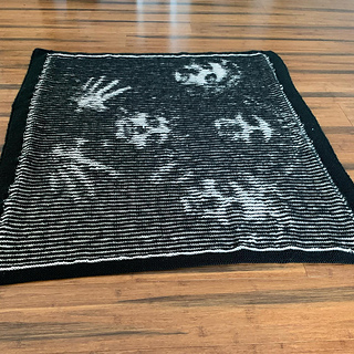 I used Stylecraft Special DK in Black and Silver. I used about 550 metres (600 yards) of each colour, with extra for the border. You can use any yarn. A thicker, or thinner, yarn will change the overall size.