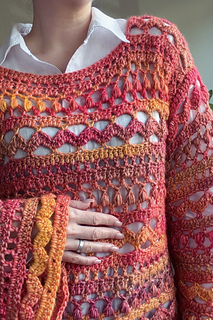 The Isadora Sweater is an elegant and easy-to-make crochet pattern featuring a delicate lace texture. It is worked from the bottom up in flat rows, making it simple to constructюThe lace stitch pattern adds a light, airy feel while still offering warmth and comfort.