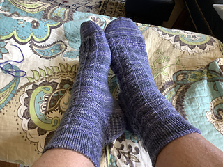 The cuff is knitted on thinner needles and then folded so the sock is kept in place. The sock is knitted in pattern along the leg and instep.