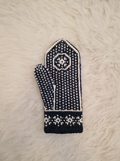 Storleken passar en mellanstor damhand och vanten blir ca 10 cm bred.